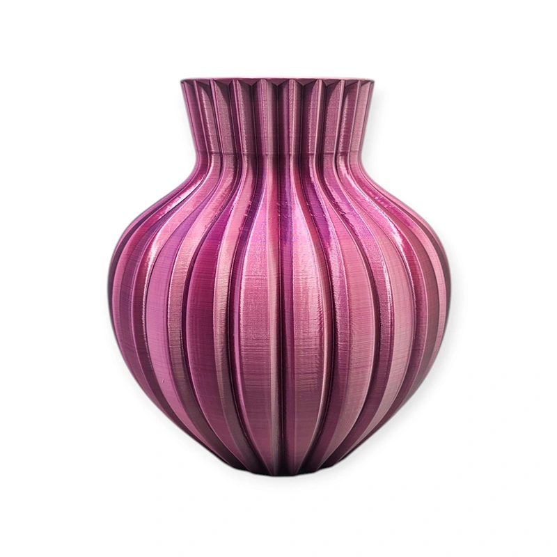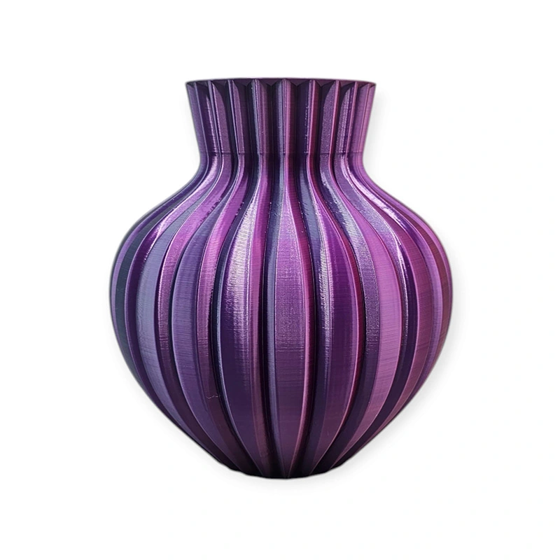 De 3D Ribbelvaas Ø21x23 cm - Fire Night is gemaakt met een 3D printer.