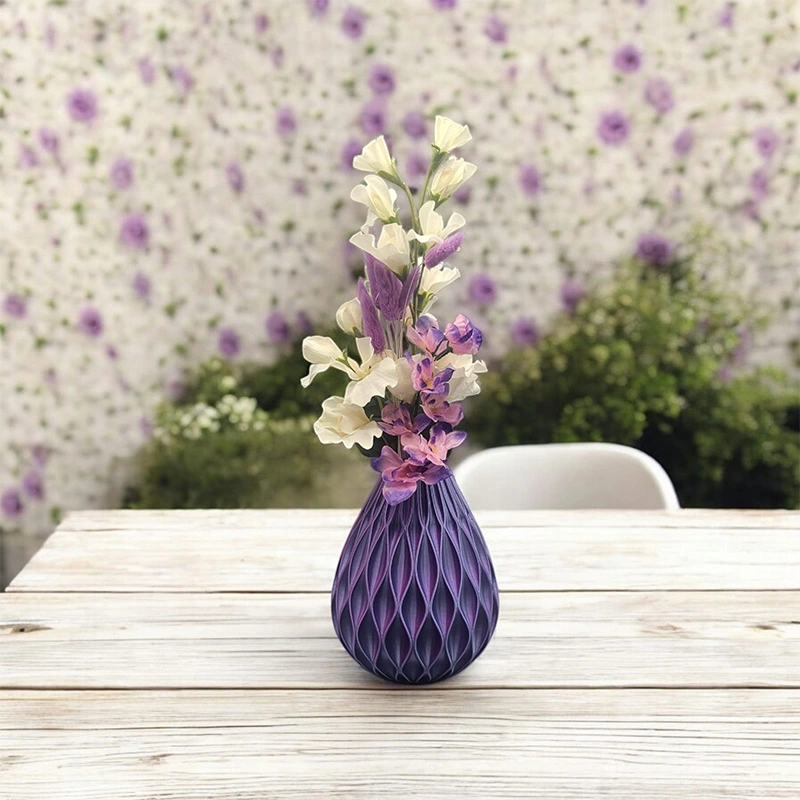 De 3D Vaas Onyx Ø13x17,5 cm - Blauw/Paars is gemaakt met een 3D printer.