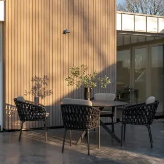 Met de 4 Seasons Outdoor Albareto Dining Tuinstoel - Antraciet kan je heerlijk buiten dineren. De Albareto heeft een moderne uitstraling door het open touwpatroon.