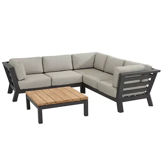 Maak een statement met onze modulaire Meteoro: meteen aanwezig antraciet frame dat vele verrassende vormen heeft. Dikke loungekussens bieden een hoog zitcomfort.