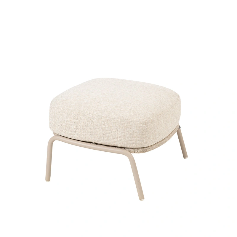 De voetenbank wordt geleverd met een stevig kussengemaakt van all weather stof. De gebruikte materialen zijn duurzaam, weerbestendig en onderhoudsvriendelijk.
