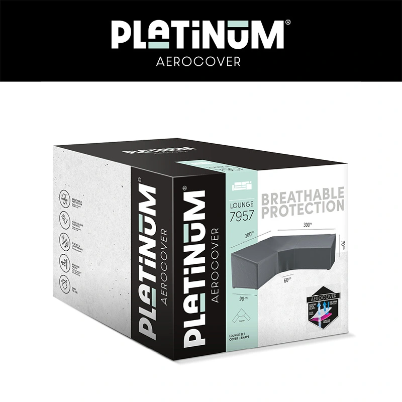 De AeroCover loungeset beschermhoes 300x300x90x65/90 cm heeft een L-vorm. Deze beschermhoes is geschikt voor het beschermen van loungesets met een hoge rugleuning. Specifiek is deze beschermhoes geschikt voor de volgende soorten loungesets: