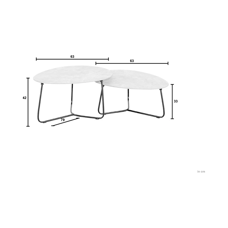 Het frame van de meubelen is gemaakt van hoogwaardig aluminium. Voor het tafelblad is gebruik gemaakt van HPMS, dit staat voor High Pressed Mineral Stone. Dit innovatieve materiaal combineert de schoonheid van natuursteen met de voordelen van moderne technologie. HPMS Stone is extreem sterk, krasbestendig en onderhoudsvriendelijk, waardoor het zeer geschikt is voor buitengebruik.