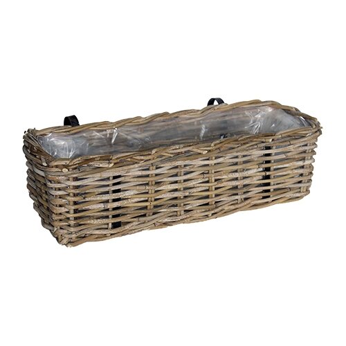 'Zet de bloemetjes buiten' Met de Balcony Planter Rattan Grey - 46x19x15 cm van van der Leeden!Deze rotan balkonbak is voorzien van een ophanghaak waardoor deze gemakkelijk aan de railing van een balkon gehangen kan worden. Deze bloembak is ook uiterst geschikt voor o.a. schuttingen. Deze balkonbak is aan de binnenkant bekleed met plastic.