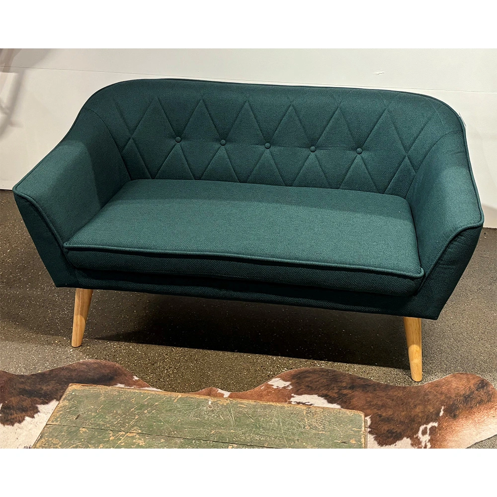 Gezellig en compact: deze Bankje Evelyn in donkergroen is ideaal voor kleinere ruimtes. De houten poten en comfortabele bekleding geven deze 2-zitsbank een retro charme, perfect voor een sfeervolle zithoek.