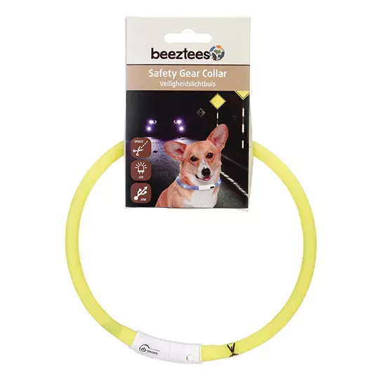 De Beeztees Safety Gear Dogini hondenhalsband is een siliconen halsband met usb aansluiting. De Dogini hondenhalsband geeft licht, waardoor je jouw hond eenvoudig in het donker kan herkennen en dat ook anderen jouw trouwe viervoeter kunnen zien. De verlichting van de halsband heeft drie standen: langzaam knipperend, snel knipperend en een continue verlichting. Zodra de verlichting verzwakt of het helemaal niet meer doet, kan je de halsband gemakkelijk opladen via de usb aansluiting. Deze halsband kan je zelf op maat knippen, waardoor het geschikt voor iedere hond. Let op: aan deze hondenhalsband kan geen hondenriem worden bevestigd.