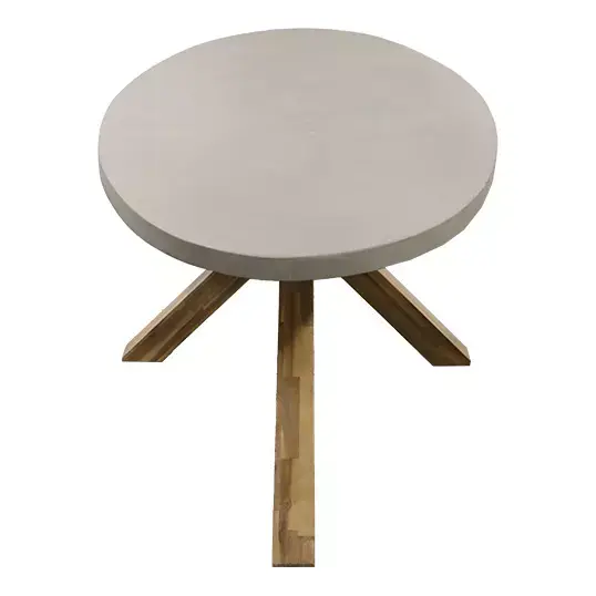De tuintafel heeft een tafelblad van polystone en een onderstel van acacia hout.
