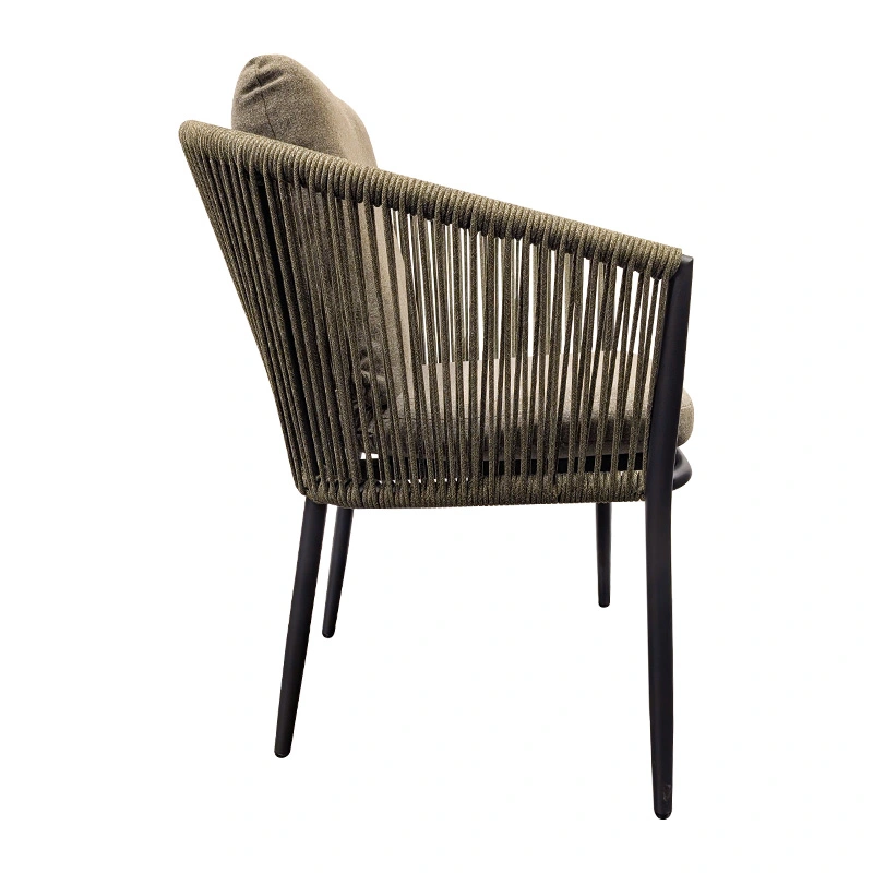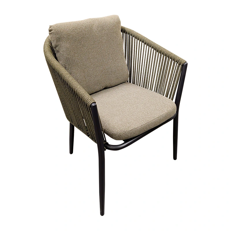 De Charlie Dining Tuinstoel - Groen combineert comfort met een moderne en stijlvolle uitstraling. De stoel is voorzien van een stevig aluminium frame dat licht van gewicht is en uitstekend bestand tegen verschillende weersomstandigheden. De zitting en rugleuning zijn afgewerkt met hoogwaardig rope, wat zorgt voor een luchtige look en een comfortabele ondersteuning.