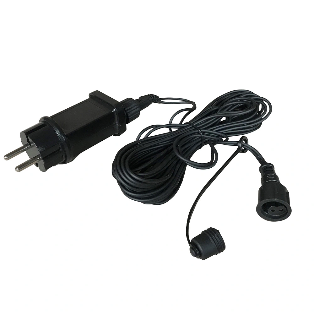 In totaal kunnen er maximaal 2000 LED lampjes aangesloten worden op deze transformator. Het aanloopsnoer heeft een zwarte kleur en een totale lengte van 5 meter.