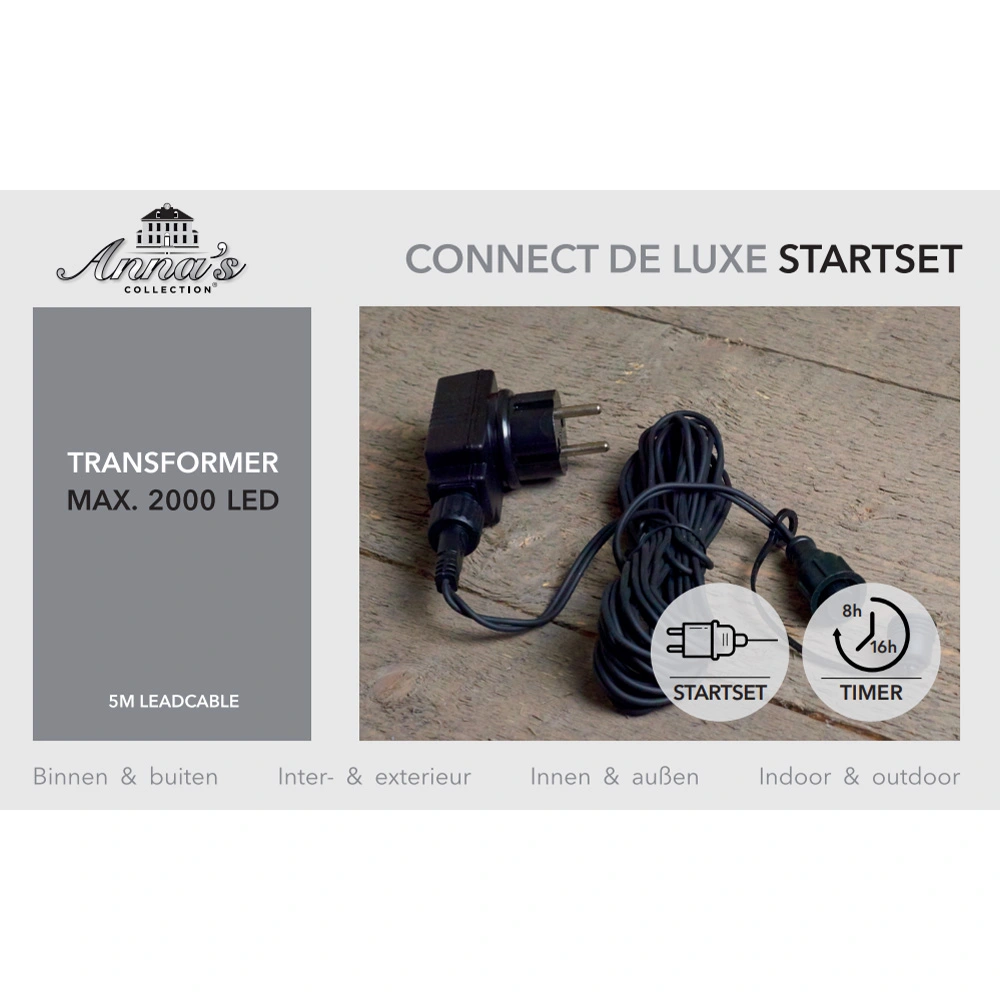 De Connect de Luxe Startset - Transformator past op alle Connect de Luxe kerstverlichting van Anna's Collection. De transformator is in te stellen aan de hand van een timer.