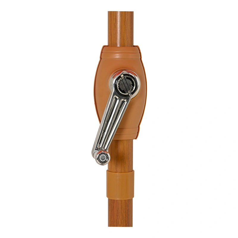 Met een diameter van 220 cm biedt de parasol ruime schaduw op zonnige dagen. De stevige middenstok met woodlook afwerking geeft een natuurlijke look, terwijl het handige opdraaisysteem zorgt voor moeiteloos openen en sluiten.