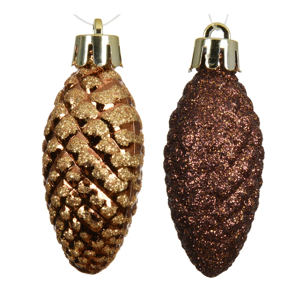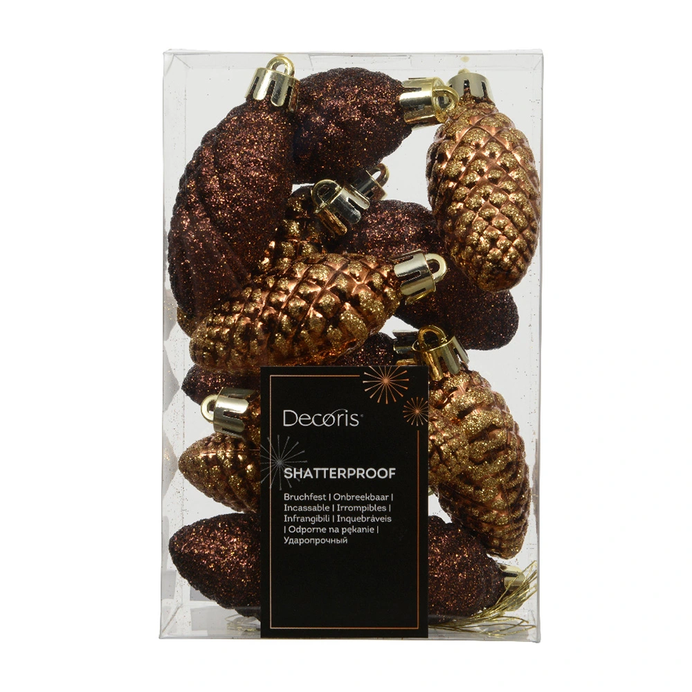 De dennenappels hebben een bruine kleur en hebben een glinsterend effect door de glitters. Een verpakking bestaat uit 12 dennenappels.