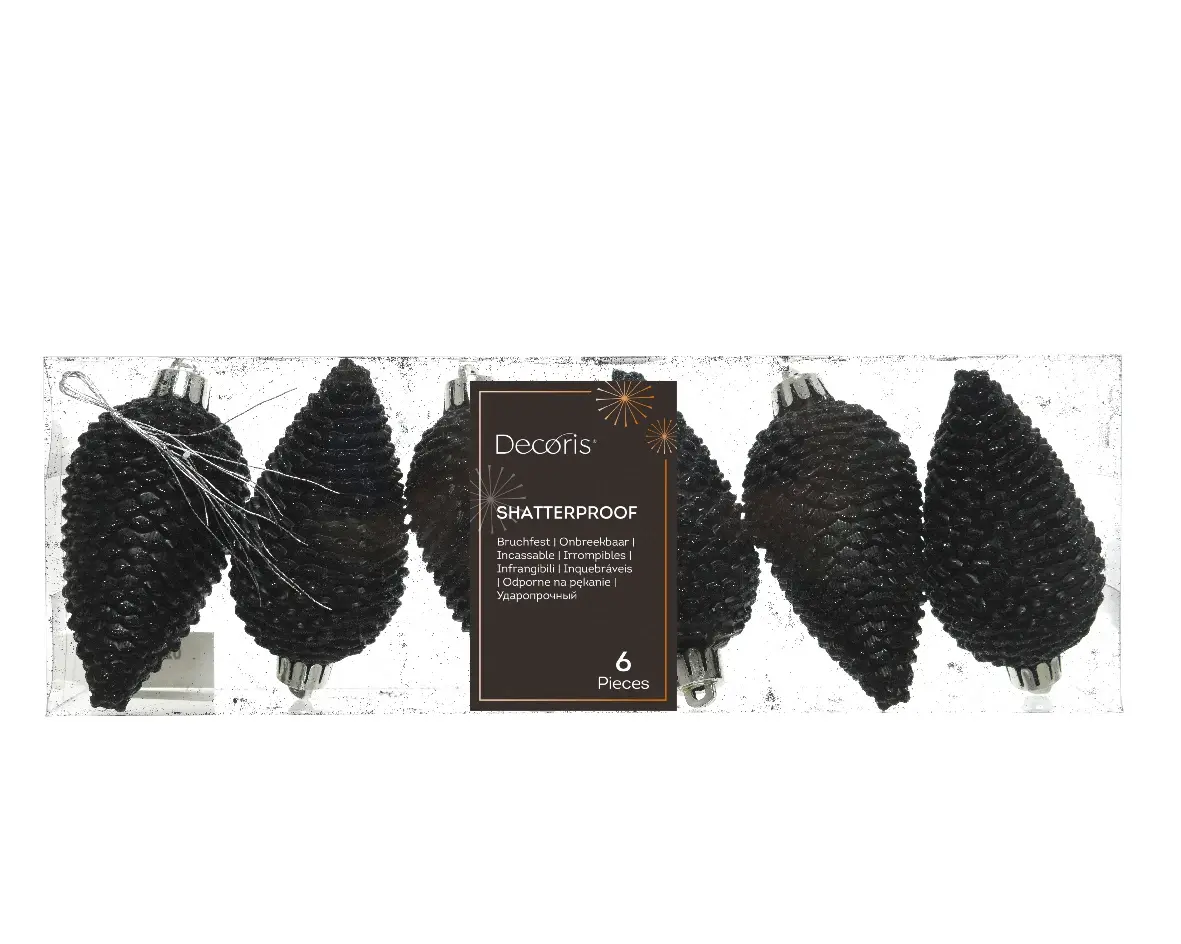 De dennenappels hebben een zwarte kleur met een glinsterend effect. Een verpakking bestaat uit 6 dennenappels.