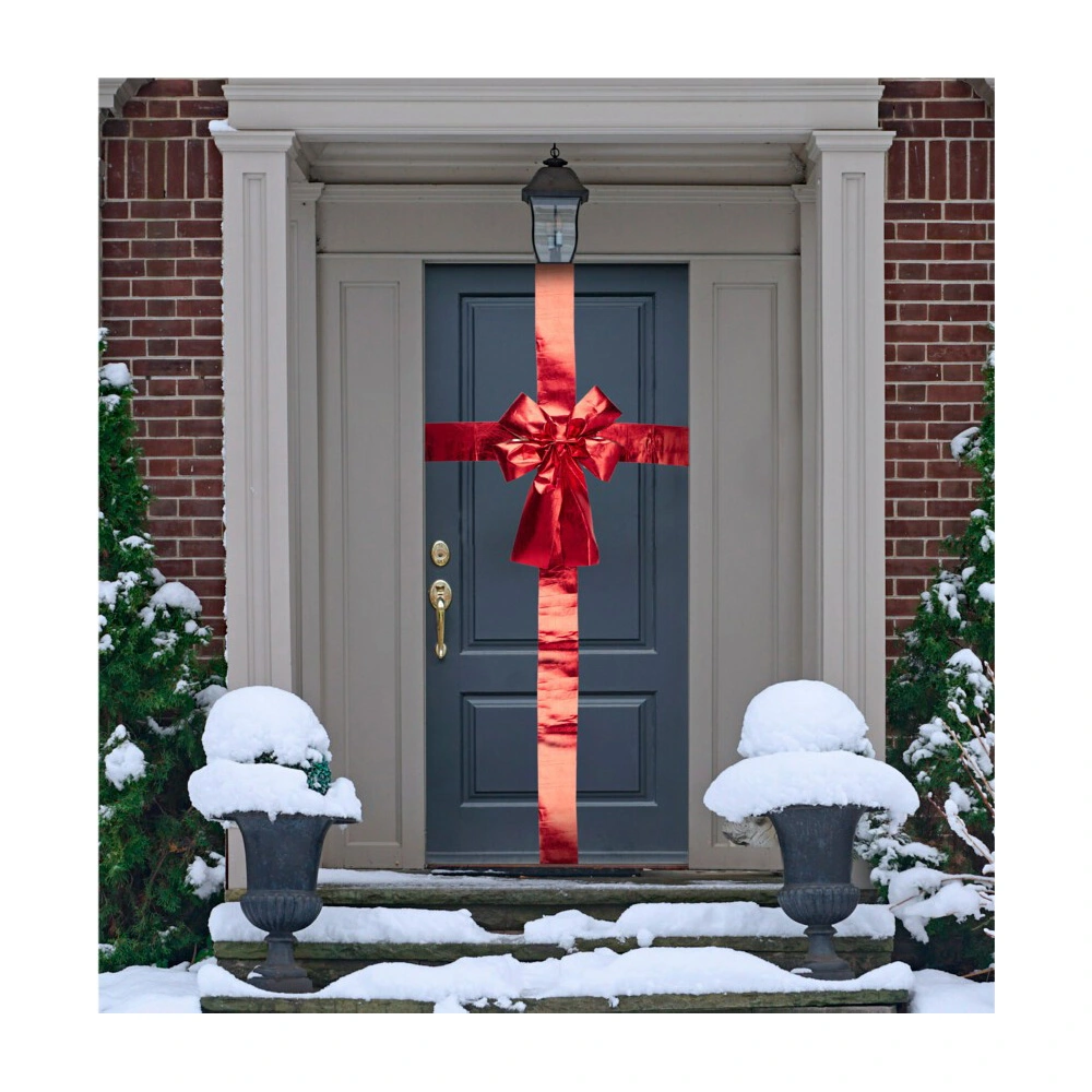 Maak je entree opvallend met deze Deurstrik 33x42 cm - Rood. De rode deurstrik van 33x42 cm lijkt op een groot cadeau en en zorgt voor een feestelijke eerste indruk.