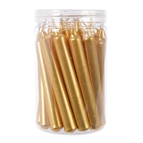 De Dinerkaars Mini Metallic 22 st. - Goud van Buitengewoon Boet zijn gemaakt van wax en zijn voorzien van een metallic finish.