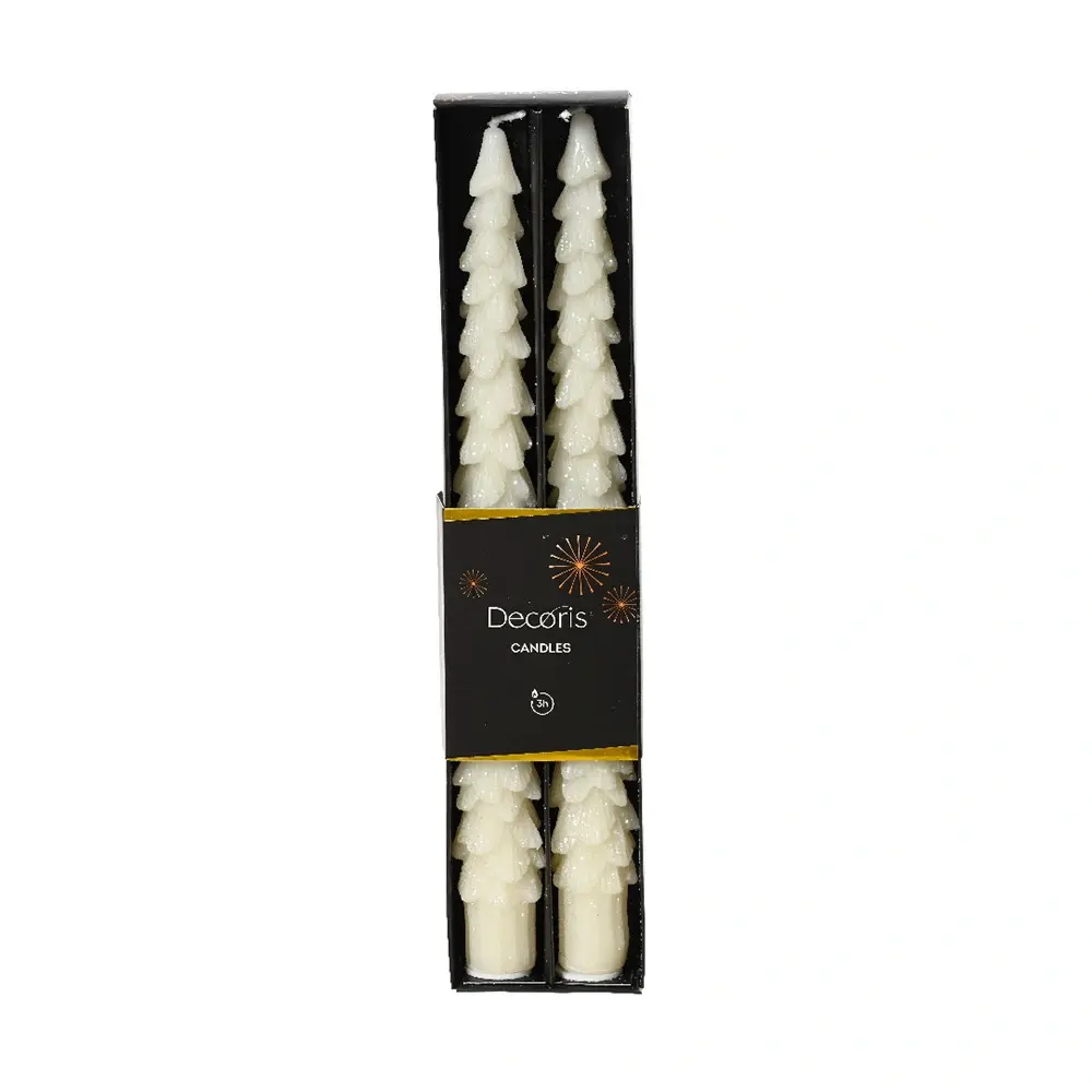De Dinerkaarsen Wax Kerstboom Wolwit - 2 st. zijn gemaakt van wax en hebben ongeveer 3 branduren.