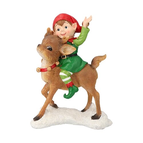 Dit leuke beeld Elf en Rendier 2 - 22,1 cm is gemaakt van polystone. Zie je 'm al op de schouw of het dressoir staan als unieke eyecatcher?