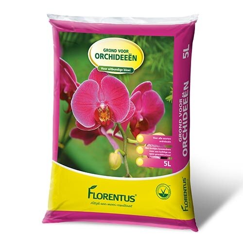 Florentus Potgrond Orchidee - 5 L is voorzien van stukjes schors voor extra lucht en een uitbundige groei. Deze potgrond is specifiek geschikt voor alle soorten orchideeën in potten en bakken.