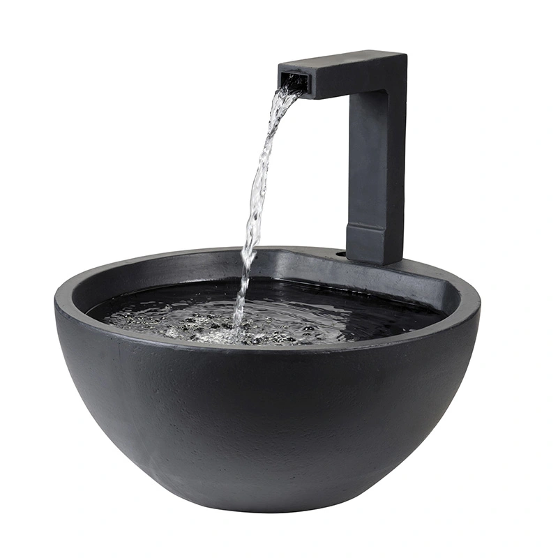Breng rust en stijl in je tuin, terras of balkon met deze moderne fontein schaal met kraanin zwart. De fontein heeft eenelegant en minimalistischontwerp waarbij het water subtiel uit de kraan in de ronde schaal stroomt. Dit zorgt voor een kalmerend watergeluid en een sfeervolle uitstraling in iedere buitenruimte.