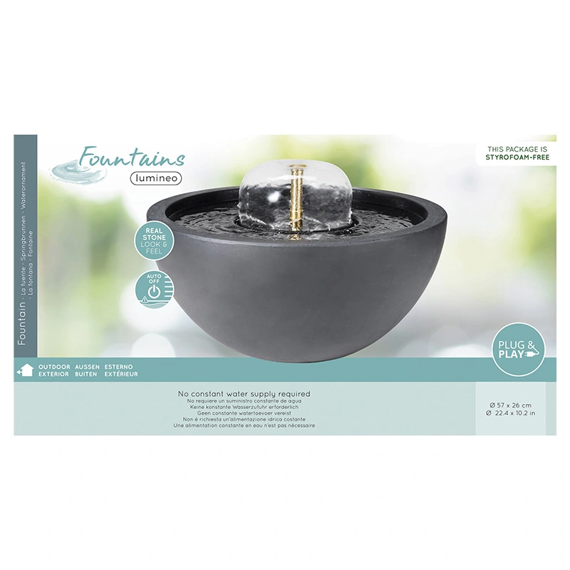Het ornament is gemaakt van sterk GRC (glasvezelversterkt beton), waardoor het duurzaam en geschikt is voor buitengebruik. Dankzij het gesloten watersysteem circuleert het water continu via de pomp, waardoor het ornamenteenvoudig in gebruikis.