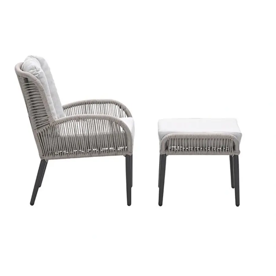 De Andorra loungestoel en de voetenbank hebben een frame gemaakt van aluminium. Het aluminium is voorzien van een beschermende poedercoating. De rugleuning en de bovenkant van de voetenbank zijn gemaakt van rope. De mee geleverde kussens hebben een hoog zitcomfort en ronden dit relax set af.