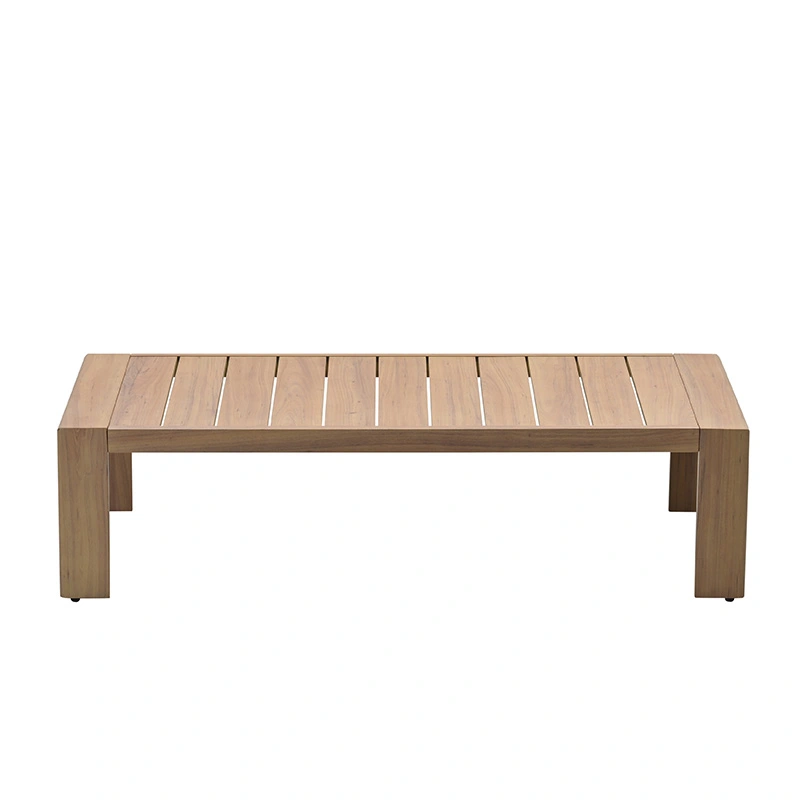 De Chicago salontafel is gemaakt van aluminium met een teaklook. Het materiaal geeft de tafel de warme uitstraling van hout, maar met het gemak en de duurzaamheid van aluminium.