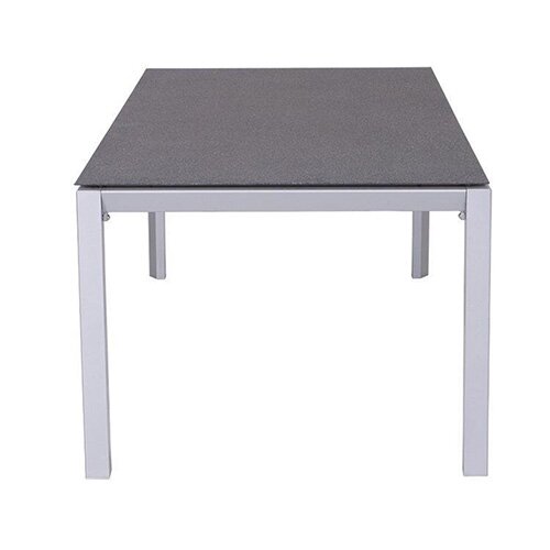 De tuintafel is gemaakt van aluminium en spraystone. De gebruikte materialen zijn duurzaam, weerbestendig en onderhoudsvriendelijk.