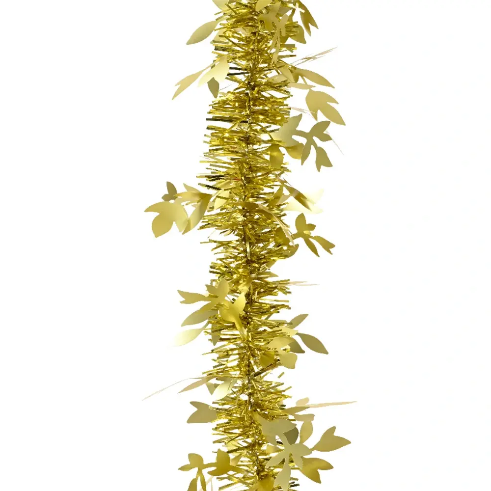 Versier de kerstboom, woonkamer en wat je maar wilt met de Guirlande Blad - Licht Goud! Deze extra lange guirlande is goudvan kleur en voorzien van blaadjes. De guirlande heeft een diameter van 3 cm en is maar liefst 2 meter lang!