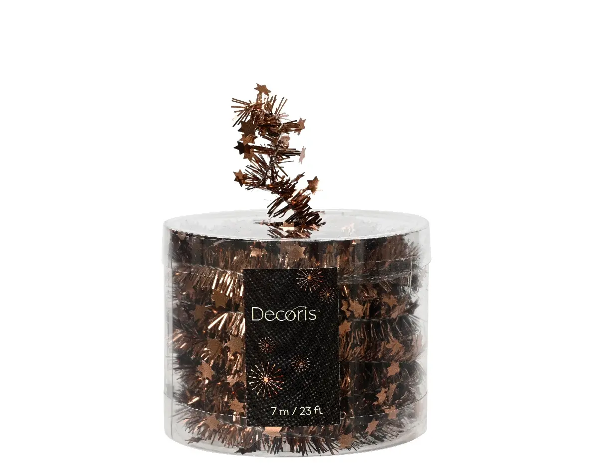 Versier de kerstboom, woonkamer en wat je maar wilt met de Guirlande Ster - Espresso! Deze guirlande is bruinvan kleur en voorzien van sterretjes. De guirlande heeft een diameter van 9 cm en is maar liefst 7 meter lang.