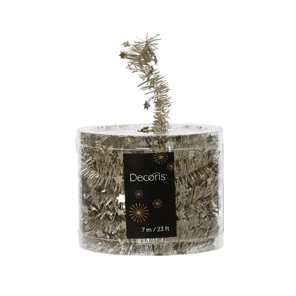Versier de kerstboom, woonkamer en wat je maar wilt met de Guirlande Ster - Parel! Deze extra lange guirlande is beigevan kleur en voorzien van sterretjes. De guirlande heeft een diameter van 3 cm en is maar liefst 7 meter lang!