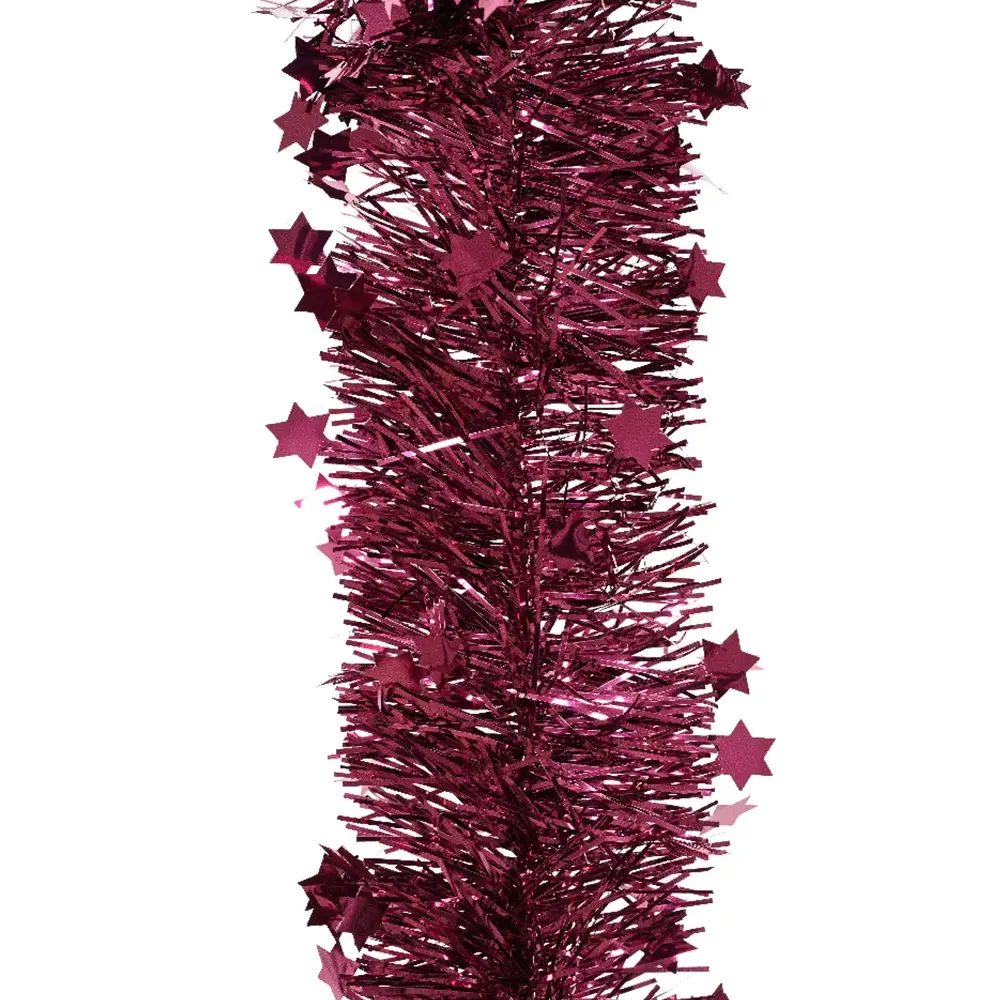 Maak het gezellig in huis en versier je kerstboom met de Guirlande Sterren - Granaatappel! Deze kerstversiering heeft een diameter van 9 cm en een lengte van 2,7 meter, zo kun je dus een groot deel van je kerstboom versieren met deze guirlande. De guirlande heeft een roze kleur en heeft een glanzend effect.