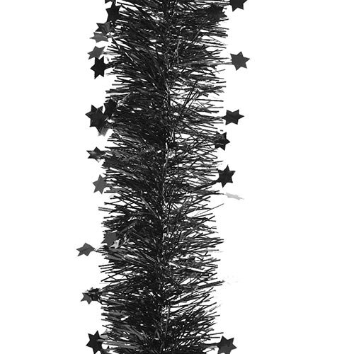 Maak het gezellig in huis en versier uw kerstboom met de Guirlande Sterren L - Zwart! Deze kerstversiering heeft een diameter van 10 cm en een lengte van 2,7 meter, zo kunt u dus een groot deel van uw kerstboom versieren met deze guirlande. De guirlande heeft een zwarte kleur en is voorzien van sterretjes.