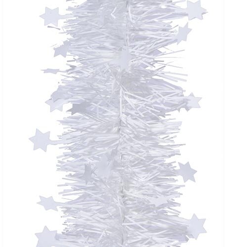Maak uw kerstboom gezellig met de Guirlande Sterren S - Wit! Deze guirlande is wit van kleur en voorzien van sterren. De guirlande heeft een diameter van 10 cm en is 2,7 meter lang.