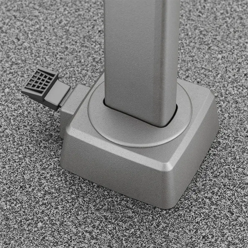 Deze set bestaat uit De Halifax Zweefparasol, een parasol beschermhoes en een granieten parasolvoet van 90 kg.
