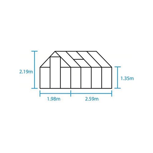 Als accessoire is een set met 2 regenpijpen Ø 40 mm (tot op het maaiveld) leverbaar. De schuifdeur met handgreep is 180 cm hoog en voorzien van een telescopische deurrail. De drempel is zeer laag waardoor de kas goed toegankelijk is.