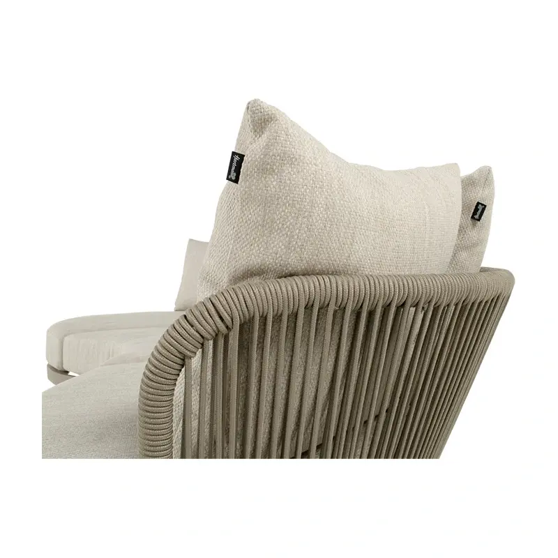 De Bjorn loungebank in taupe is een stijlvolle aanvulling voor je buitenruimte, ontworpen met oog voor detail en comfort. De bank combineert strakke lijnen met organische vormen voor een tijdloze uitstraling die in elke tuin past. Het stevige frame, omhuld met gevlochten rope, straalt kwaliteit uit, terwijl de zachte, weerbestendige kussens dankzij de weatherready technologie comfort bieden in elk seizoen.