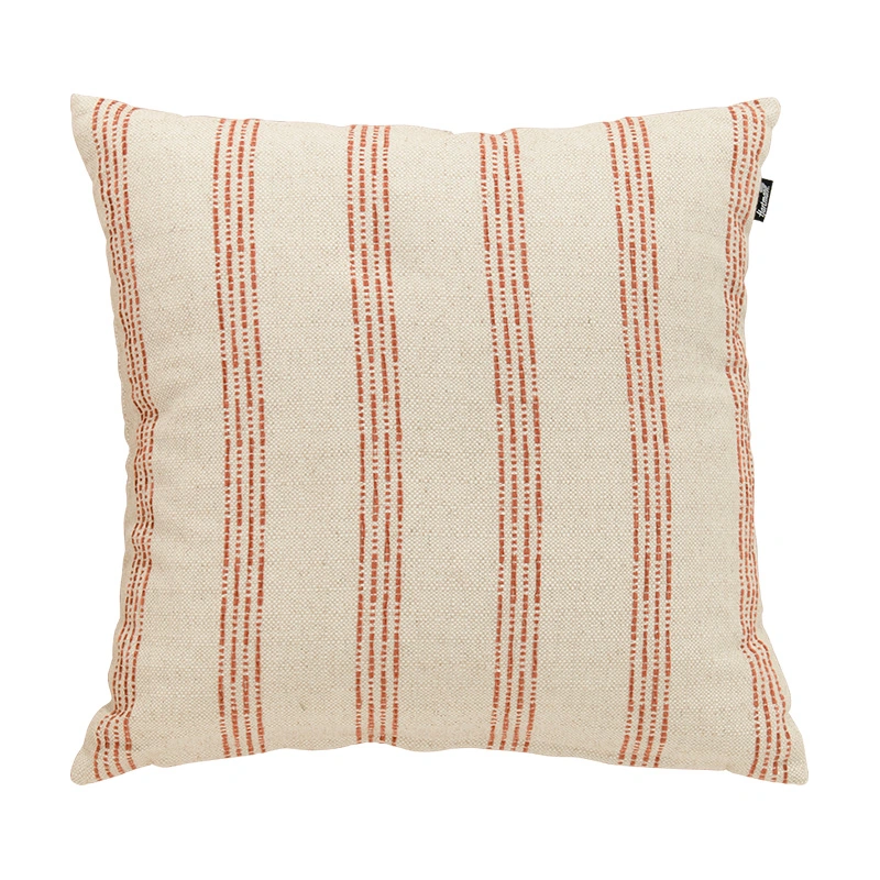 De natuurlijke basis gecombineerd met terracotta strepen geeft het kussen een warme en tijdloze look die eenvoudig te combineren is met diverse tuinmeubelen. Perfect als decoratief accent en extra ondersteuning op een tuinbank, stoel of loungeset.
