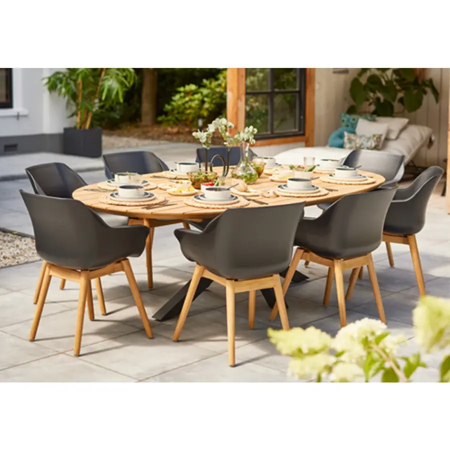 Het begon met de Sophie Armchair, de eerste kunststof kuipstoel in de Hartman Sophie familie. De Sophie stoelen hebben allemaal een fris modern design en zitten heerlijk door de unieke vorm van de kuip. De Teak Armchair kenmerkt zich door het teakhouten onderstel en de brede armlegger, deze geeft net een beetje extra zitcomfort. Omkijken naar Sophie hoeft niet, je kunt de tuinstoel gerust het hele jaar door buiten laten staan!