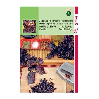 Horti Tops Japanse Peterselie (Perilla Nankinensis) wordt ook wel Shiso genoemd. Japanse peterselie heeft een prachtige paarse kleur en behoort tot de muntfamilie. De smaak is een combinatie tussen munt, basilicum en venkel. Japanse Peterselie wordt veel gebruikt in de Aziatische keuken en is o.a. lekker in salades en diverse vlees- en visgerechten.