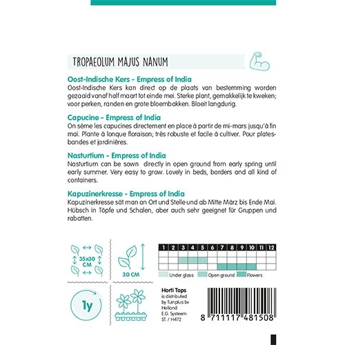 Schrijf zelf een recensie over "Horti Tops Tropaeolum, Oost-Indische Kers Empress Of India"