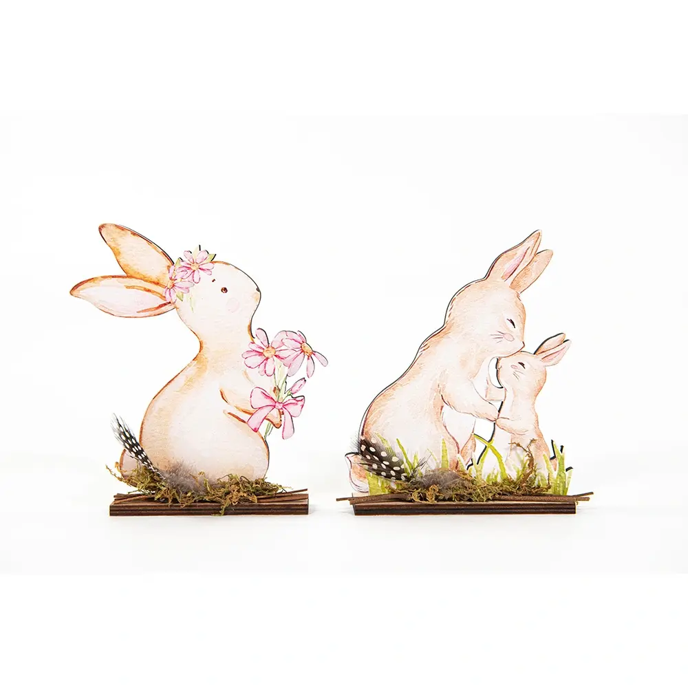 Vier de Lente en haal het voorjaar in huis! Maak het extra gezellig met deze 'Houten Konijn 14x18 cm - Assorti'.