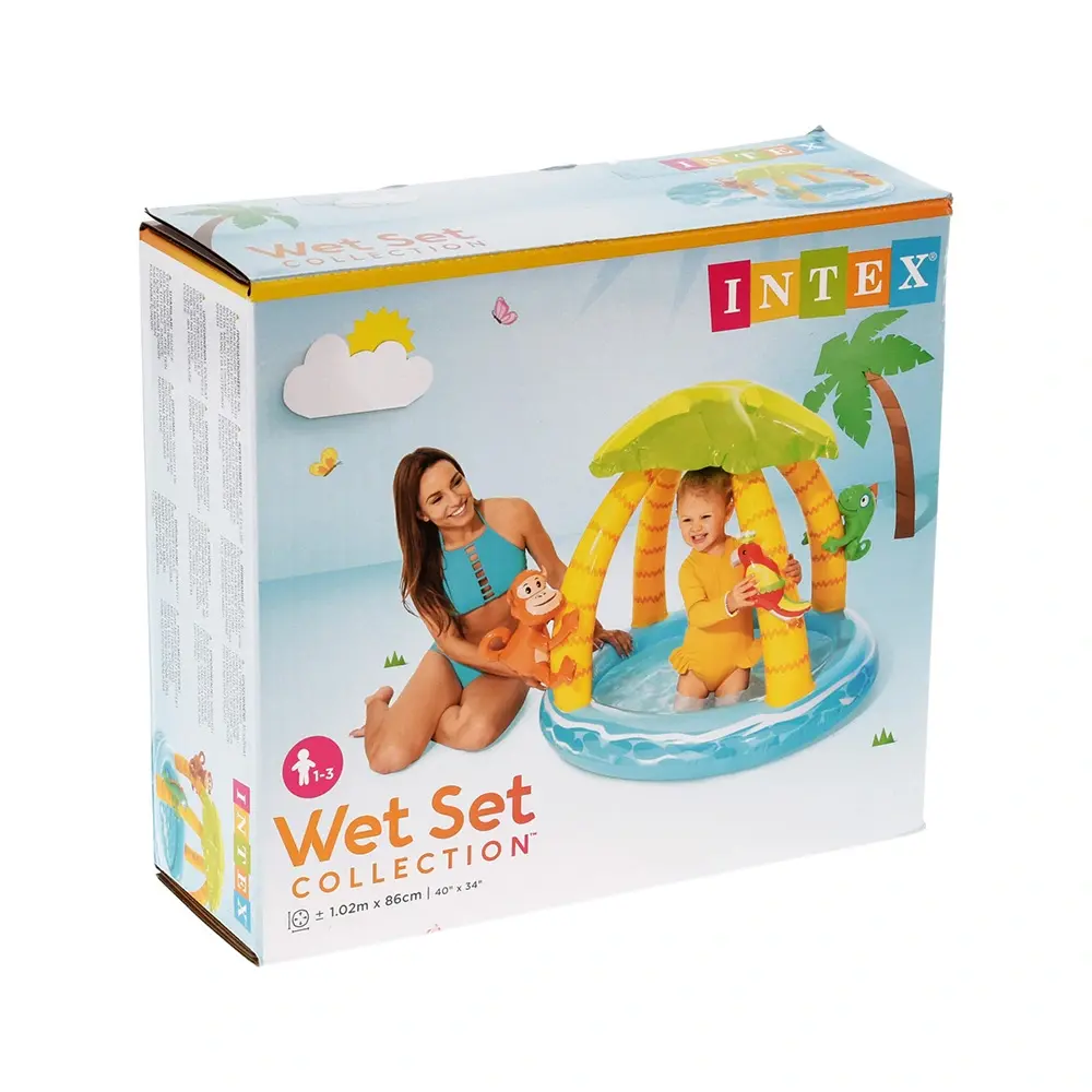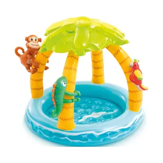 Volop waterpret in eigen tuin met het Intex Tropisch Eiland Opblaaszwembad! Het zwembadje heeft een vorm van een tropisch eiland. Zo kan je peuter op de warme dagen heerlijk spetteren in het water.