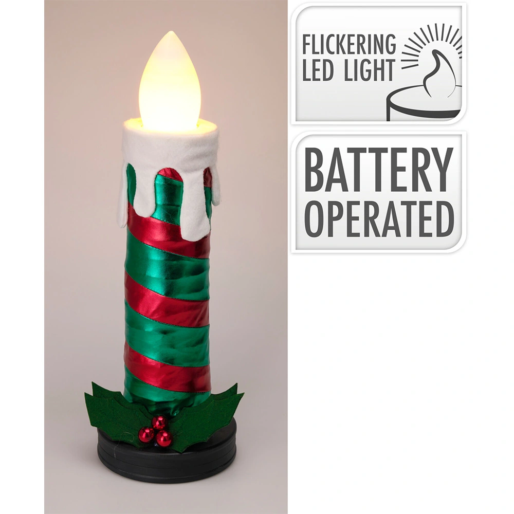 Met Kaars Inklapbaar 60 cm - Groen maak je het direct gezellig in huis. De leuke LED kaars is uitgevoerd in een groen-rode candy cane stijl en is voorzien van muziek. De verlichting heeft een flikkerend kaarseffect wat voor een realistisch effect zorgt. De LED kaars creëert een warme, knusse sfeer zonder open vuur en is een sfeervol en veilig alternatief voor echte kaarsen.