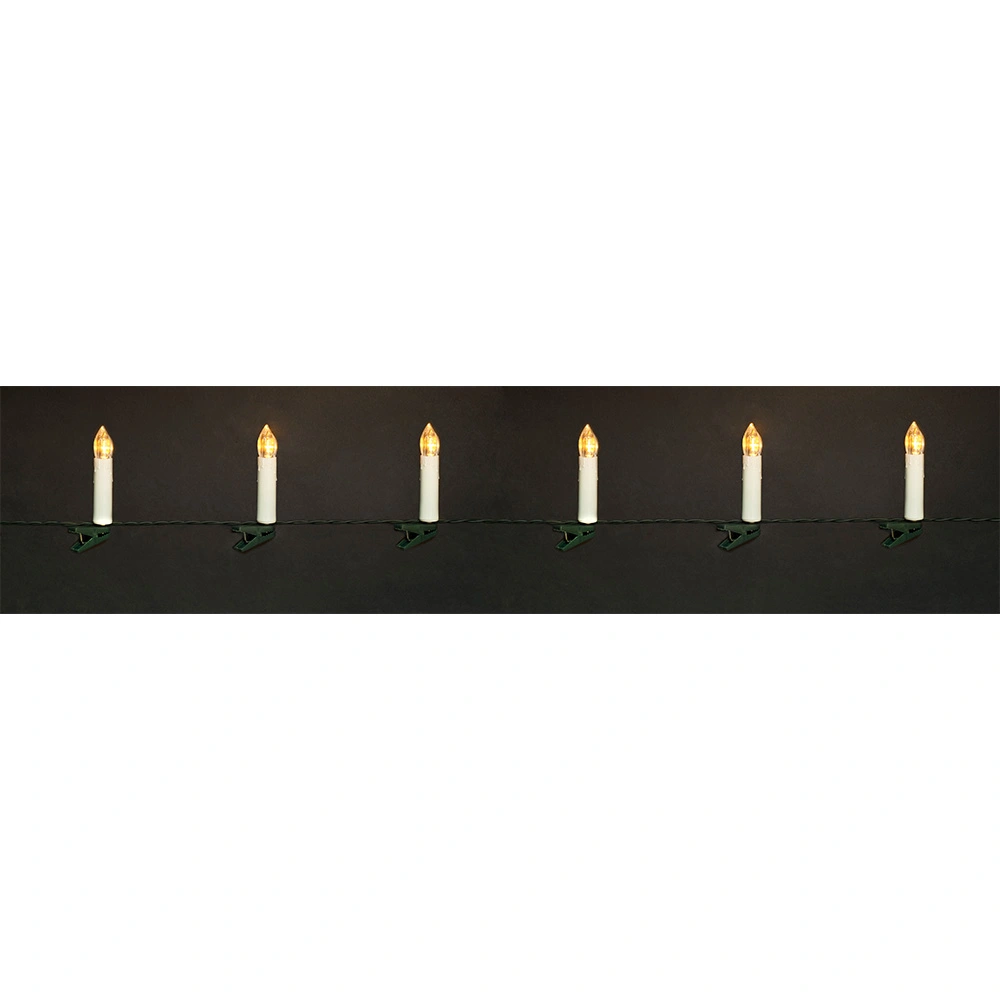 Met deze Anna's Collection kerstboomverlichting heeft u direct een warme kerstsfeer in huis! De klassieke kaarsjes voor in de kerstboom maar dan in een modern LED jasje. Aan het groene snoer zitten 50 kaarsjes met LED lampjes en een aan/uit schakelaar. Aan de kaarsjes zijn knijpers bevestigd waarmee de kaarsjes aan de takken vastgemaakt kunnen worden. Het snoer is 12,5 meter lang en de LED lichtjes geven een klassiek warm licht af.