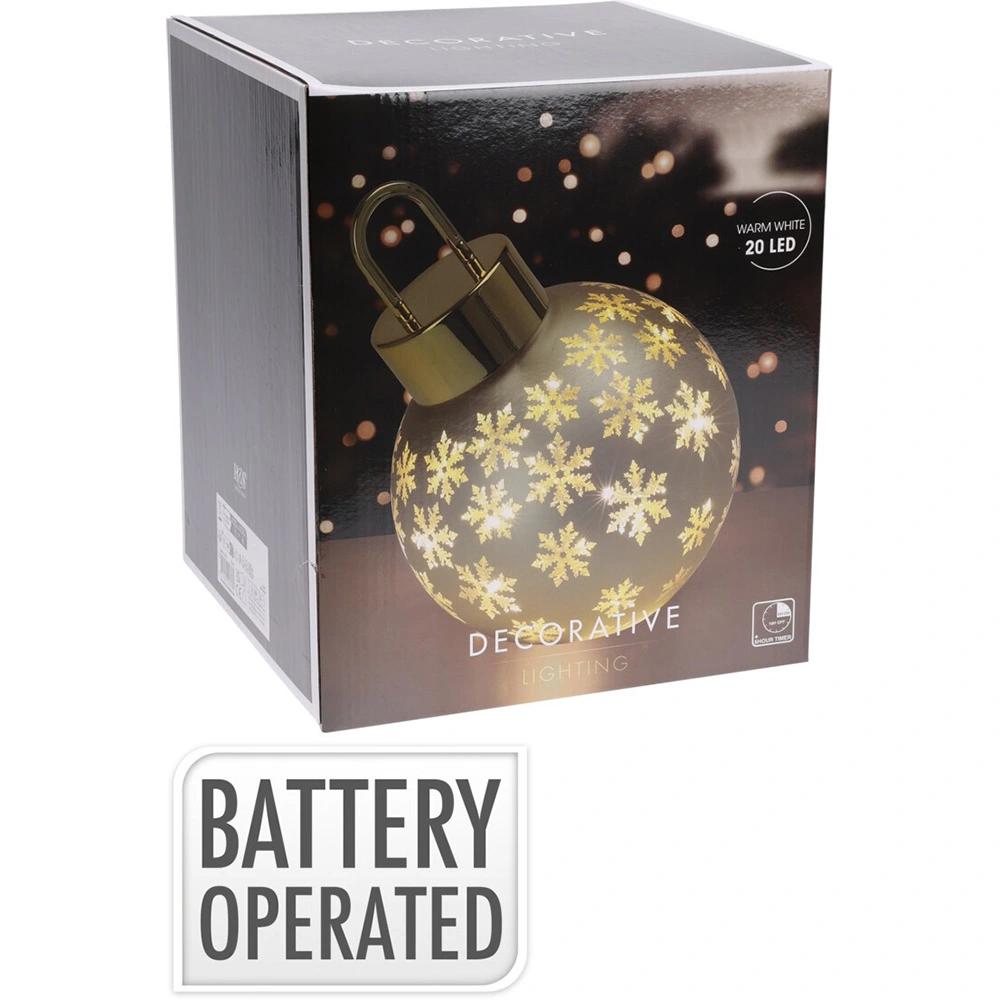 De verlichting werkt op batterijen, welke niet zijn inbegrepen. Ook beschikt deze LED bal over een handige timer, waarbij de verlichting 6 uur aan staat en 18 uur uit.