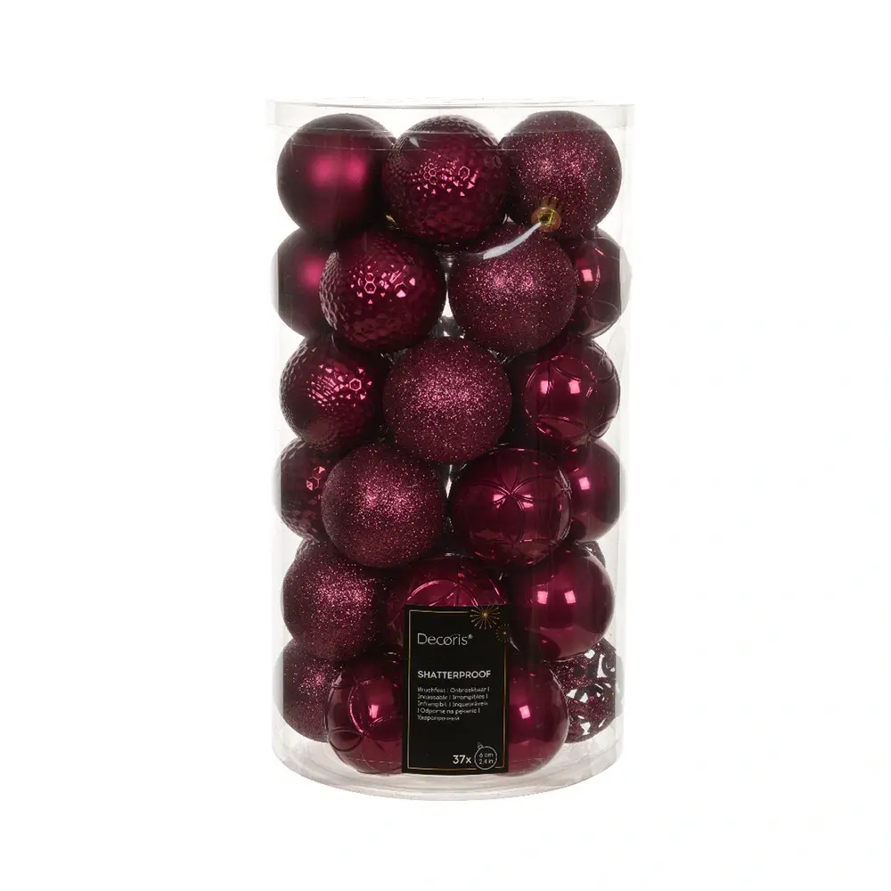 Jouw kerstboom prachtig versierd met de Kerstballen Mix 37 st. - Granaatappel van Decoris! Deze onbreekbare kerstballen zijn gemaakt van kunststof en daarom veilig voor kinderen en huisdieren.