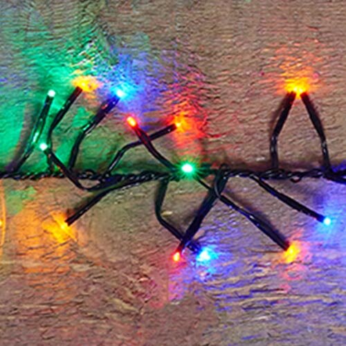 Aan het zwarte snoer van 12,5 meter zitten 960 LED lampjes die een oranje, rood, groen en blauw licht afgeven. Het aanloopsnoer heeft een lengte van 4 meter. Deze clusterverlichting is specifiek geschikt voor kerstbomen met een hoogte tussen de 1,9 - 2,2 meter.