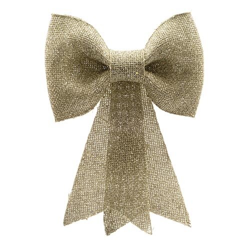 De Kerstboom Strik M - Licht Goud van Buitengewoon Boet is gemaakt van plastic en is goud van kleur. Hang meerdere strikken in de boom of gebruik er één als vervanging van de piek.