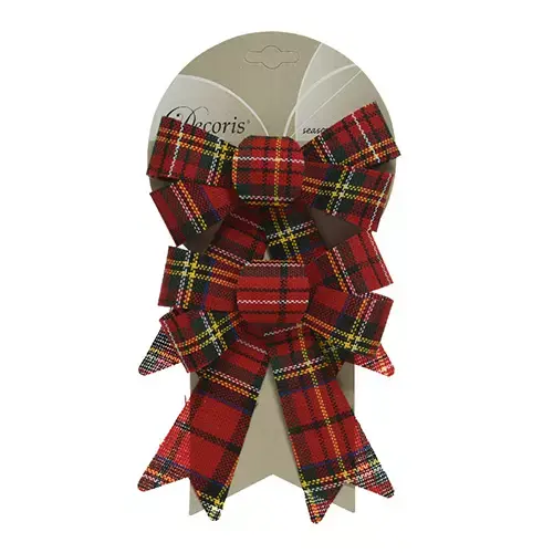 De Kerstboom Strikken Clip S - Ruit Kerstrood zijn gemaakt van polyester en zijn rood geruit van kleur. Een verpakking bevat 2 strikken. Hang meerdere strikken in de boom of gebruik er één als vervanging van de piek.