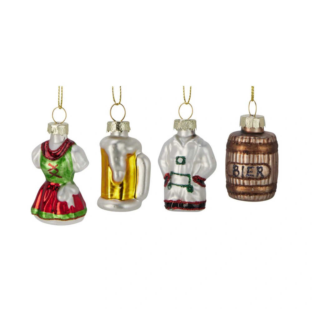 Vier de feestdagen in stijl met deze Kersthanger Oktoberfest 5 cm - 4 st.. De set bestaat uit vier glazen hangers met Oktoberfest-thema, waaronder een bierpul, een houten biervat en traditionele kleding. Leuk en origineel voor in de boom!